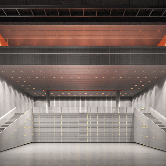 Sala multilinguagem que reúne uma pluralidade de expressões artísticas em um ambiente customizável. Com arquitetura monumental, pé direito de 18 metros e inovadora estrutura modular, o espaço oferece diferentes possibilidades de uso – música, dança, artes cênicas, apresentações multimídia e mais – para que múltiplas experiências culturais possam se desdobrar em um único dia e local.
